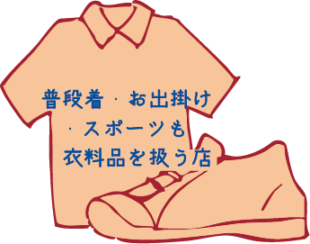 普段着・お出掛け・スポーツも 衣料や履物を扱うお店