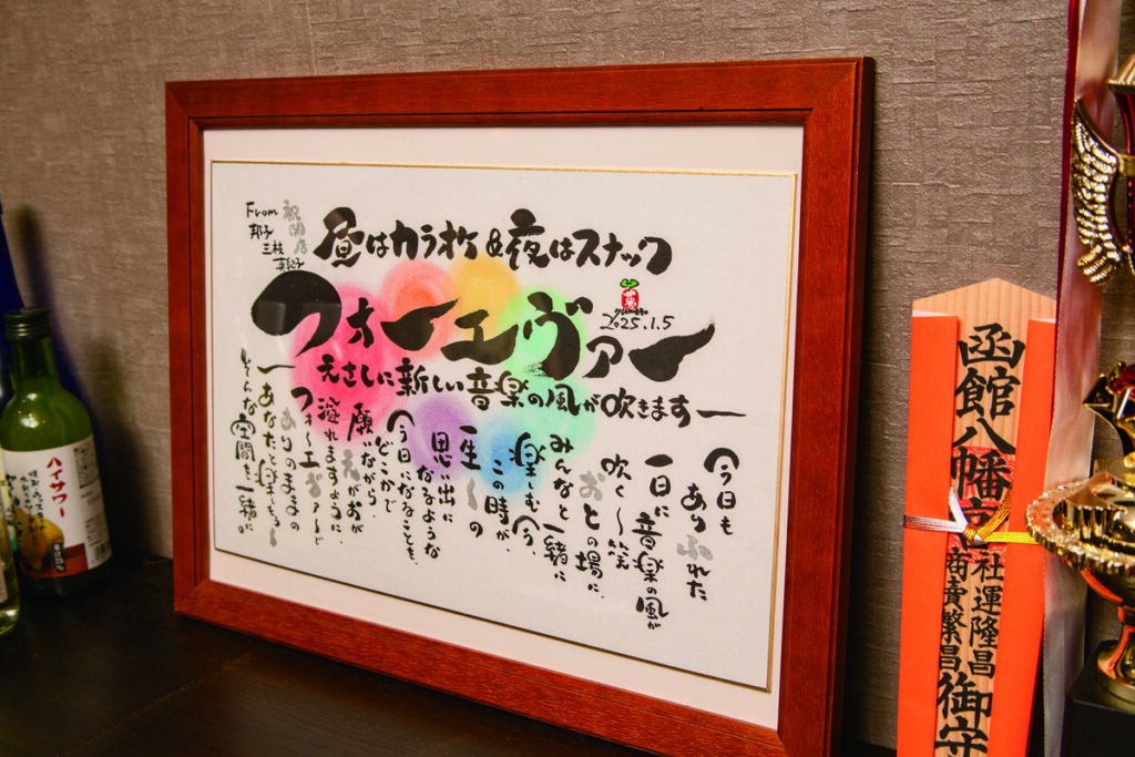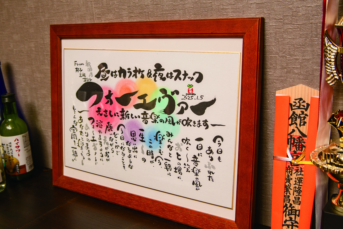 昼間は気軽にカラオケを楽しめる空間、夜は賑やかで楽しいスナックとして、音楽と憩いのスポットが誕生しました。アットホームな雰囲気が自慢で、音楽好きの方はもちろん、ふらっと立ち寄りたい方も大歓迎です。歌がとても上手で話し好きな気さくなママとの会話を楽しみながら、ジュースやお酒を片手に語らい、懐かしい音楽やリクエスト曲で盛り上がりましょう。