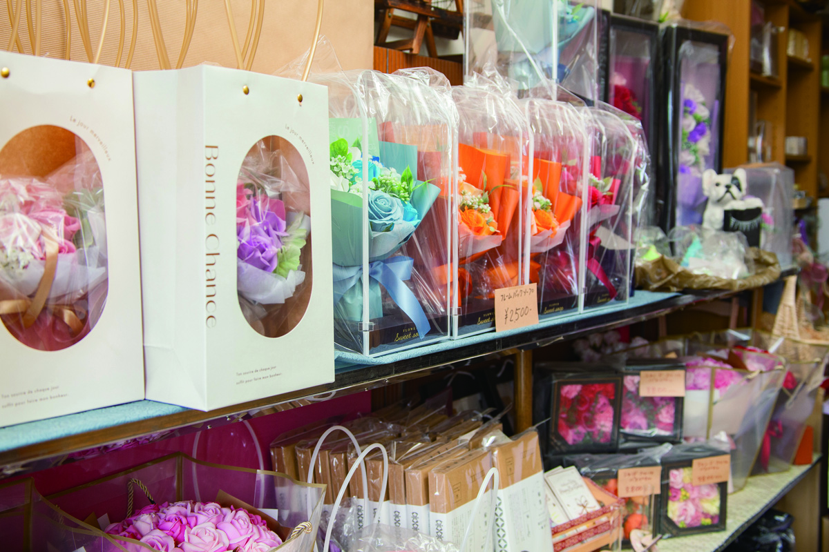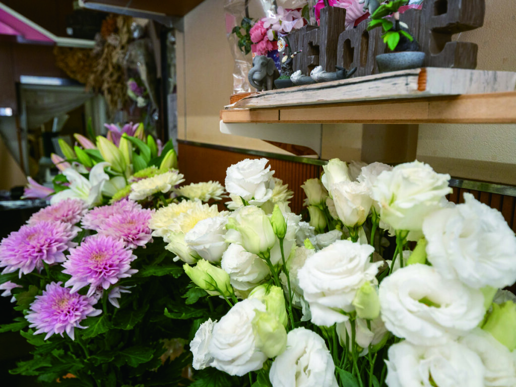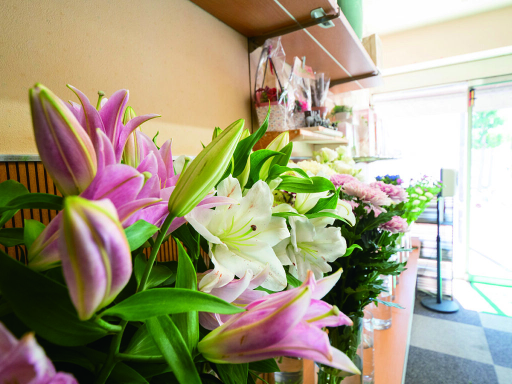 週3回新鮮なお花を仕入れ、ご要望に合わせた花束やアレンジメントを作って販売しています。慶事、仏事や母の日などの贈り物はもちろん、日常の彩りにぜひご利用ください。早めにご予約いただけるとイメージに合うお花を用意しやすくなります。遠方にお花をお届けしたい場合はお届け先地域の生花店への取次も可能ですので、ご相談下さい。