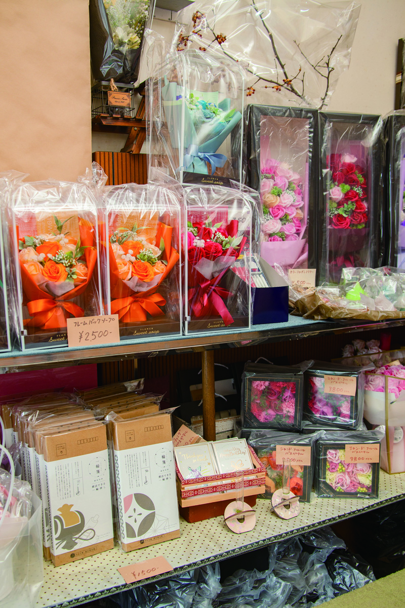 週3回新鮮なお花を仕入れ、ご要望に合わせた花束やアレンジメントを作って販売しています。慶事、仏事や母の日などの贈り物はもちろん、日常の彩りにぜひご利用ください。早めにご予約いただけるとイメージに合うお花を用意しやすくなります。遠方にお花をお届けしたい場合はお届け先地域の生花店への取次も可能ですので、ご相談下さい。