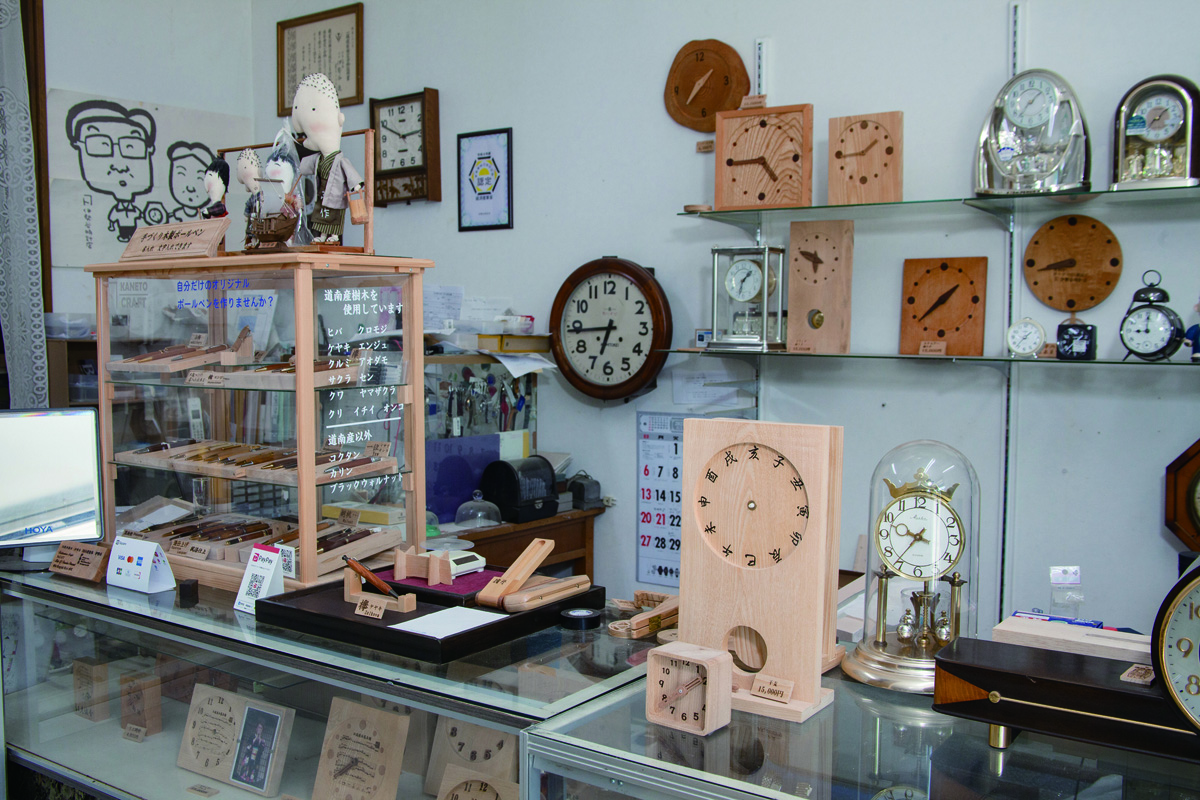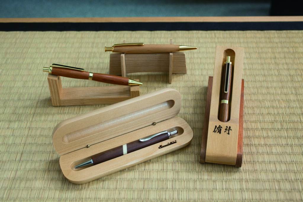 近年は店主自ら地場の木材等で時計やボールペンなどの木工雑貨を製造し販売しています。文字入れも出来るので贈り物にぴったり。