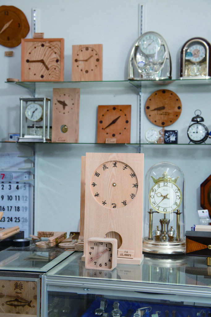 近年は店主自ら地場の木材等で時計やボールペンなどの木工雑貨を製造し販売しています。文字入れも出来るので贈り物にぴったり。