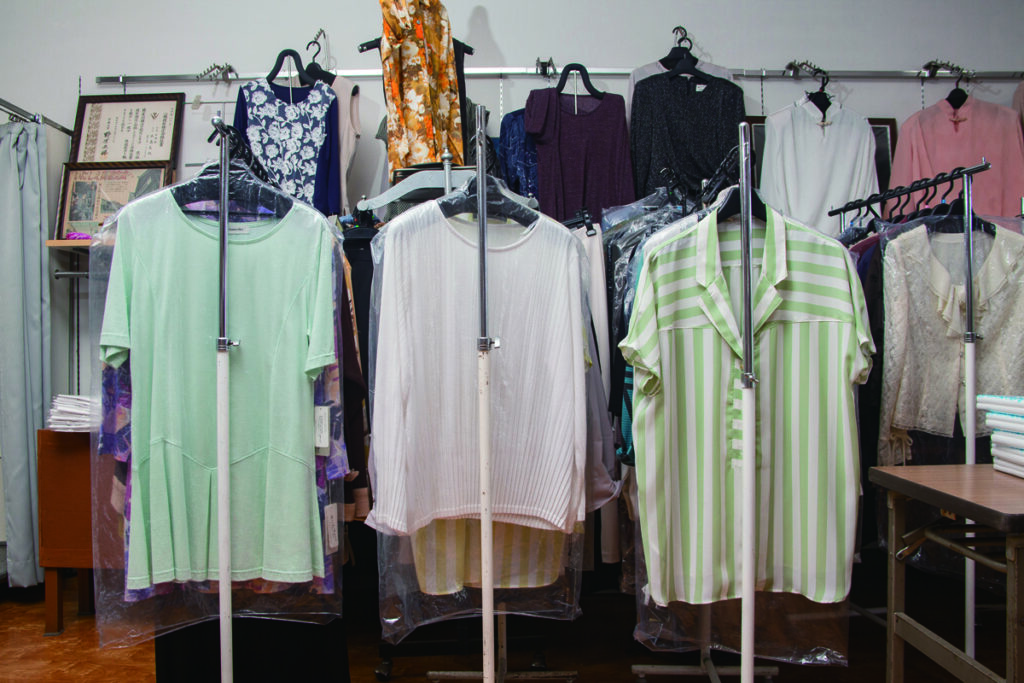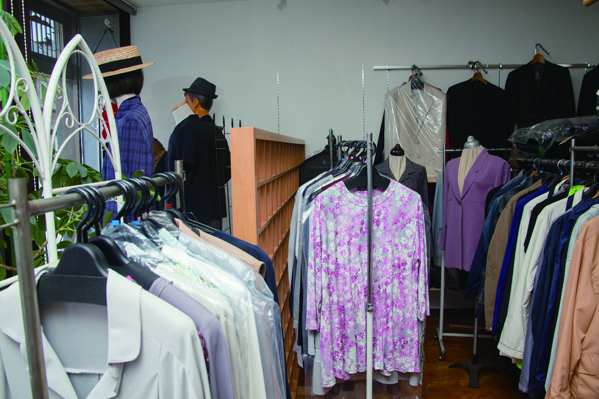 店内には婦人服・紳士服が並びます。店主に相談しながら買い物を楽しみたい。