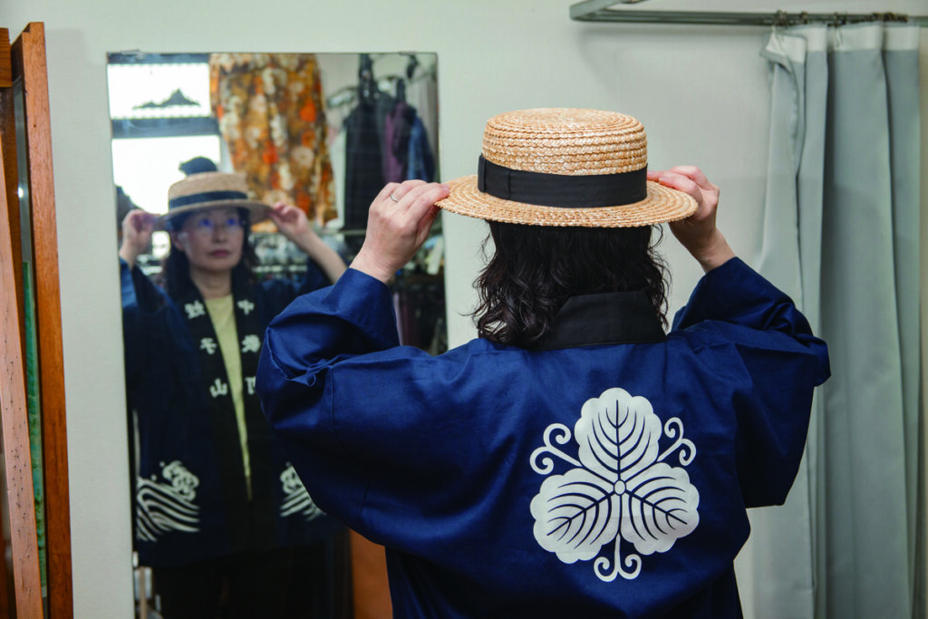 いにしえ街道の中心部に位置する歴史ある洋装店で、紳士服、婦人服を取り扱っています。8月の姥神祭りが近付くと、店内は祭り着や履物、篠笛、手ぬぐいなどが並びます。祭りハンテンやカンカン帽など本州の職人が製作する受注生産品は早めのご注文を。本染めの暖簾や祭事の紋幕・提灯など、伝統的な用品のオーダーも得意としています。