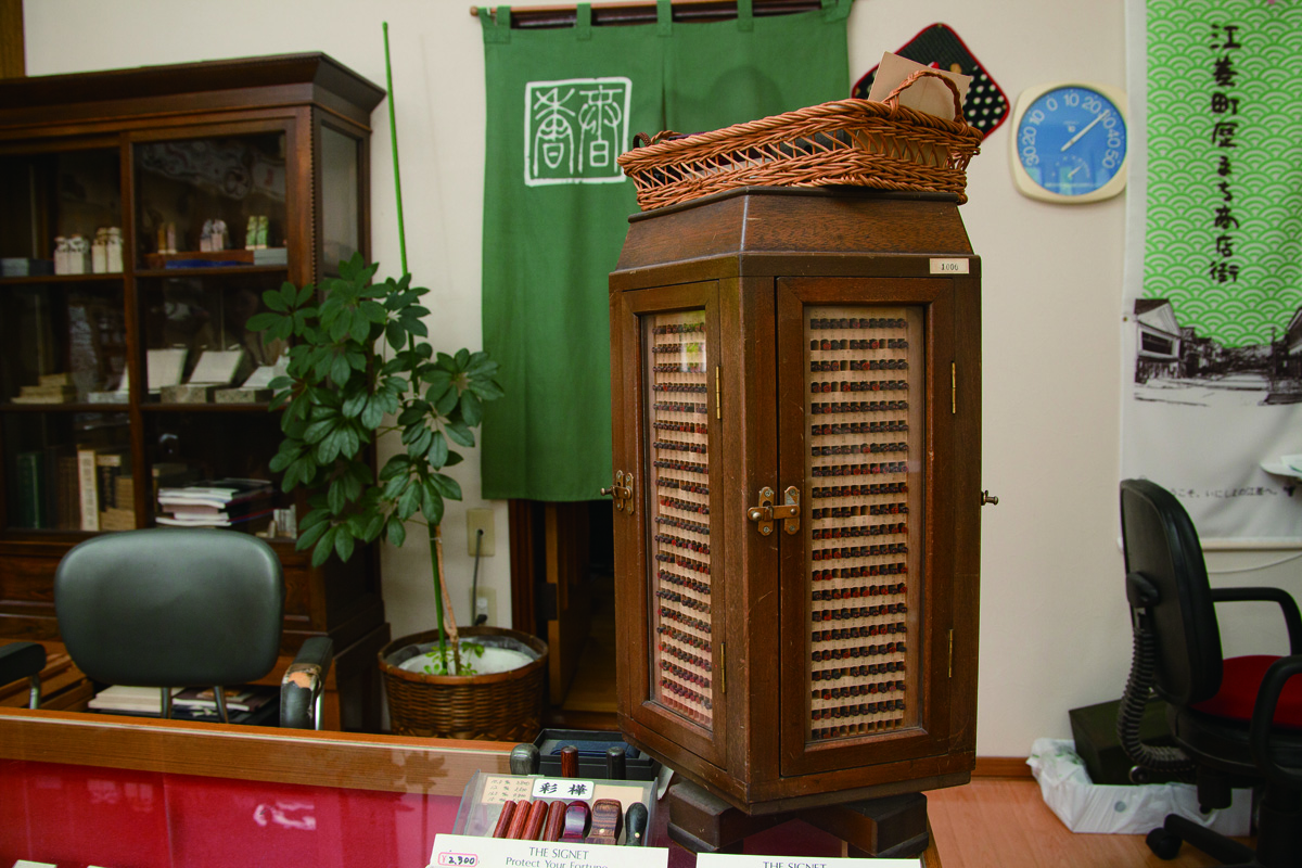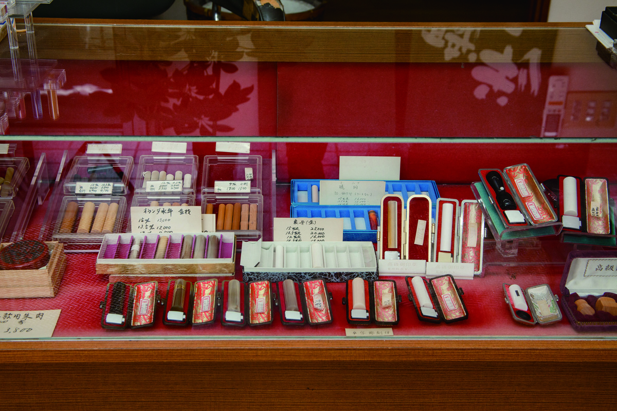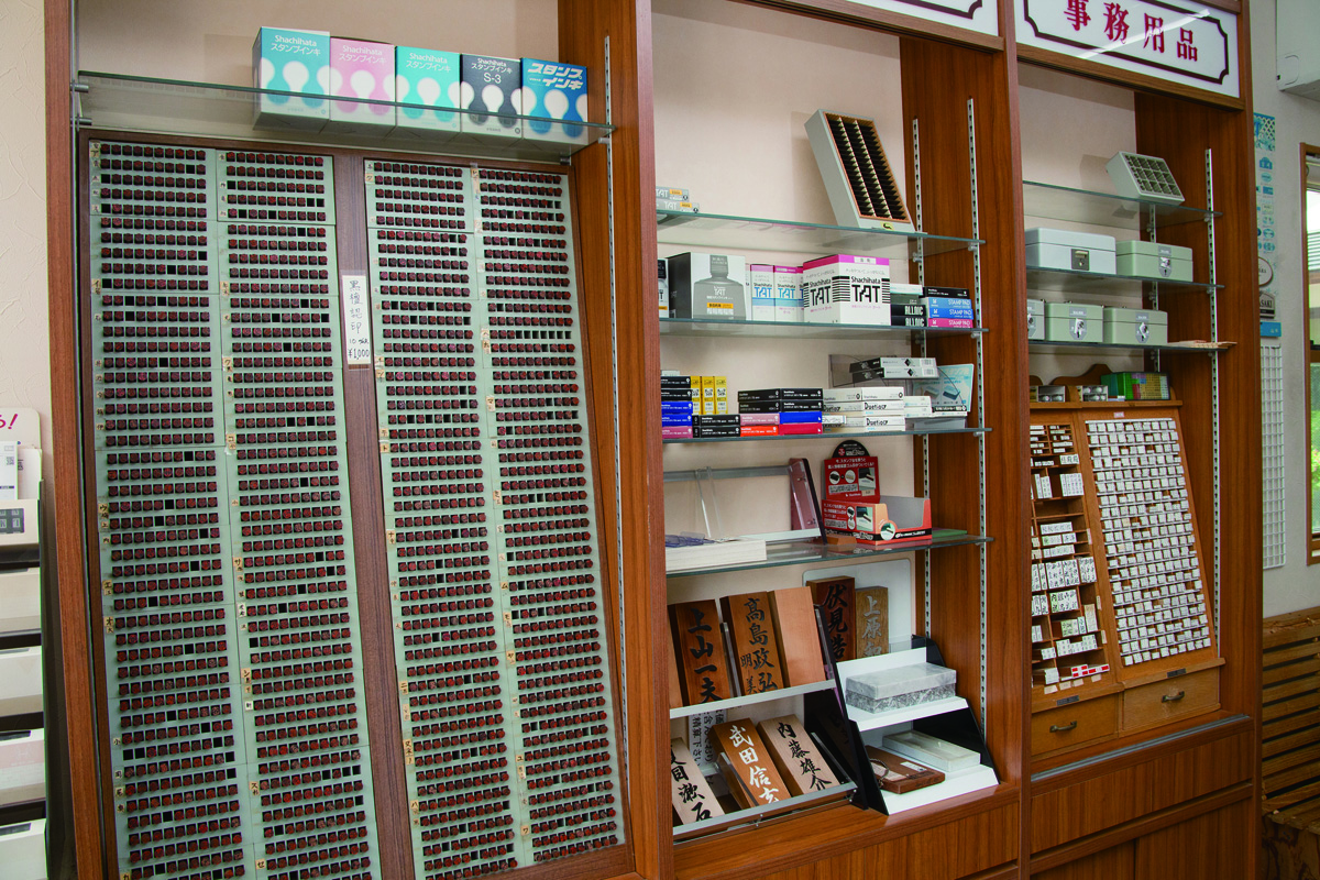実印・銀行印・認印などの個人使用印、代表者印・会社印などの法人使用印、ゴム印などの事務用印の製造販売を承っています。店内には長年使用してきた木製の印鑑ショーケースや展示ケースがあり、歴史が感じられます。実用印のほか、書道や絵画に使用する「落款」も取り扱っています。あなただけのこだわりの印を作ってみませんか?