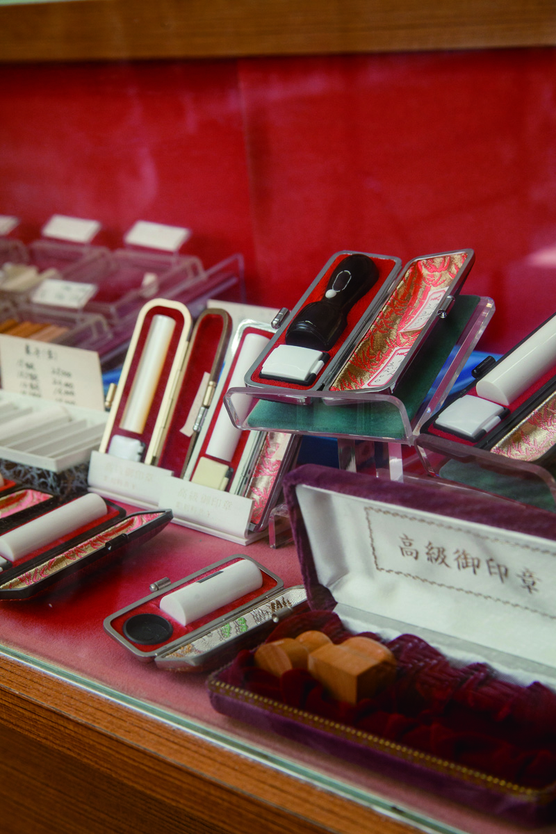 実印・銀行印・認印などの個人使用印、代表者印・会社印などの法人使用印、ゴム印などの事務用印の製造販売を承っています。店内には長年使用してきた木製の印鑑ショーケースや展示ケースがあり、歴史が感じられます。実用印のほか、書道や絵画に使用する「落款」も取り扱っています。あなただけのこだわりの印を作ってみませんか?